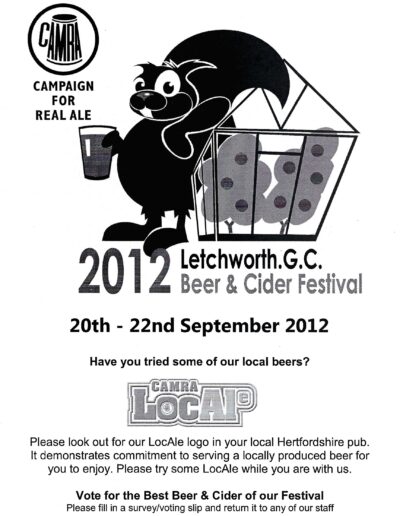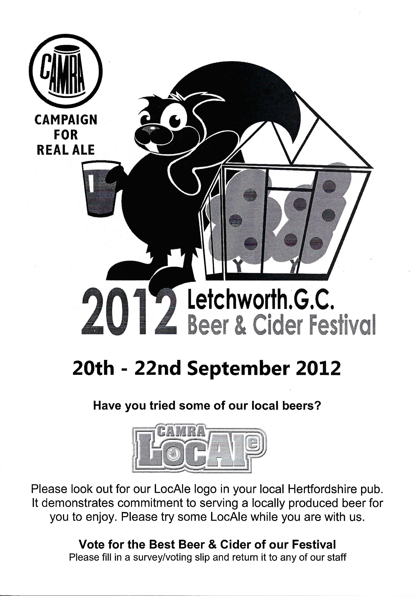 Unfortunately, in early 2012, the Plinston Hall closed. A new venue, Green House Community Market (just off the Wynd) in Letchworth, with bars distributed among the trading units. The only serious problem we had with that Festival was due to it being in a semi-open facility with no source of heating in a rather cold late September. It was an interesting experience, but we decided to not repeat it and we have not held a festival in Letchworth since.