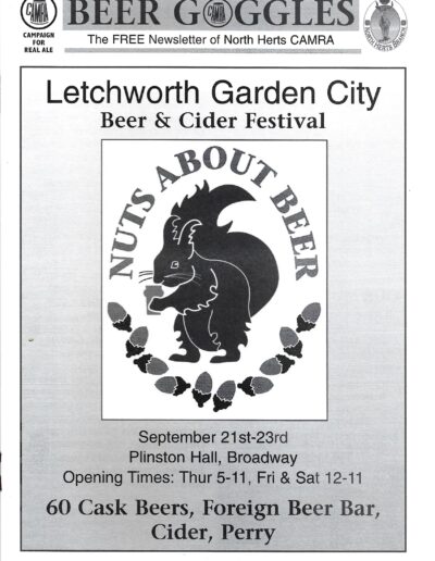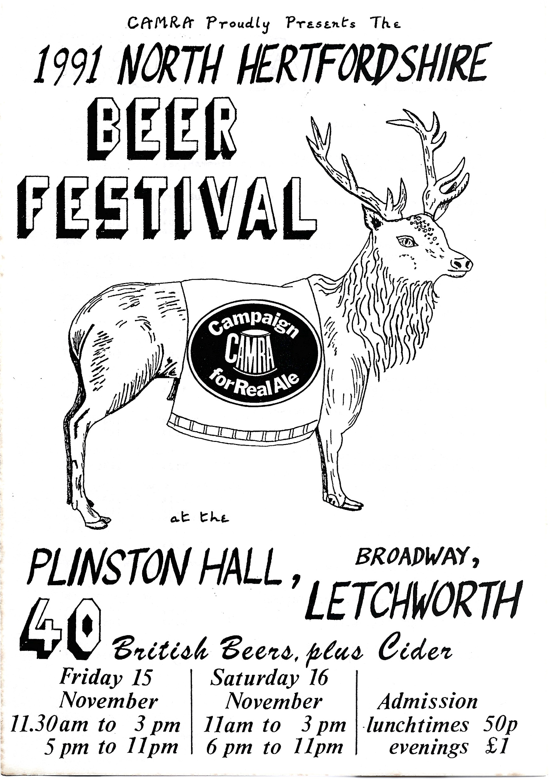 The first festival was held at the Plinston Hall in Letchworth November 1991, selling 40 beers from 30 breweries, plus ciders & perries from 9 makers. Look at this year’s range and see how we’ve grown! Immediately prior to that 1991 event, ITV local news did a feature on our Beer Festival being in a former Temperance Town, the extra publicity resulted in a packed hall and a queue down the street. Success beyond expectation.